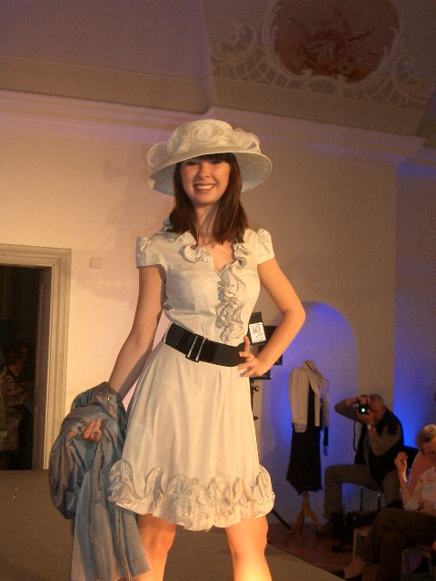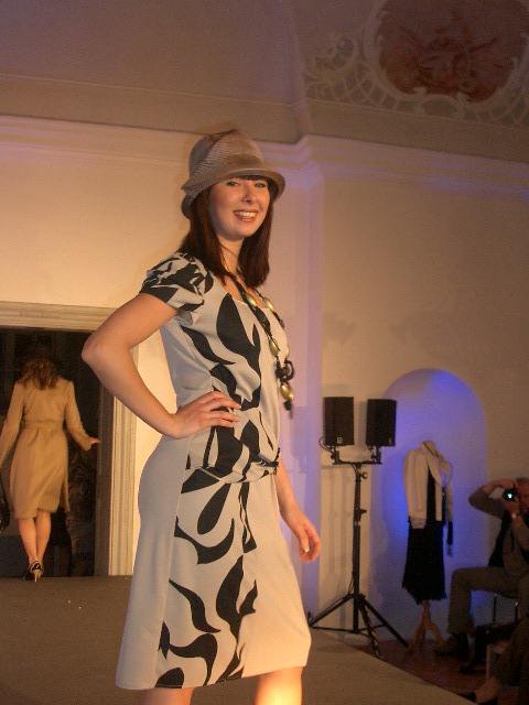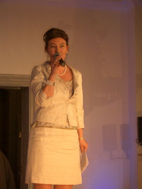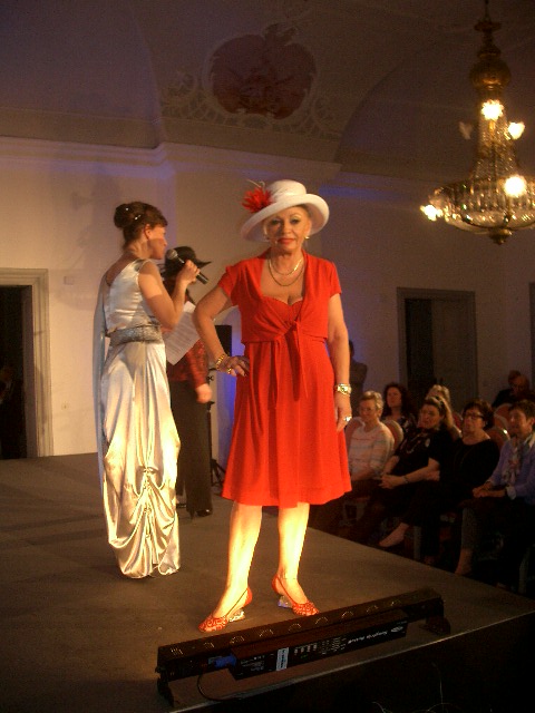 Die Designerin bei der Moderation der Abendkollektion