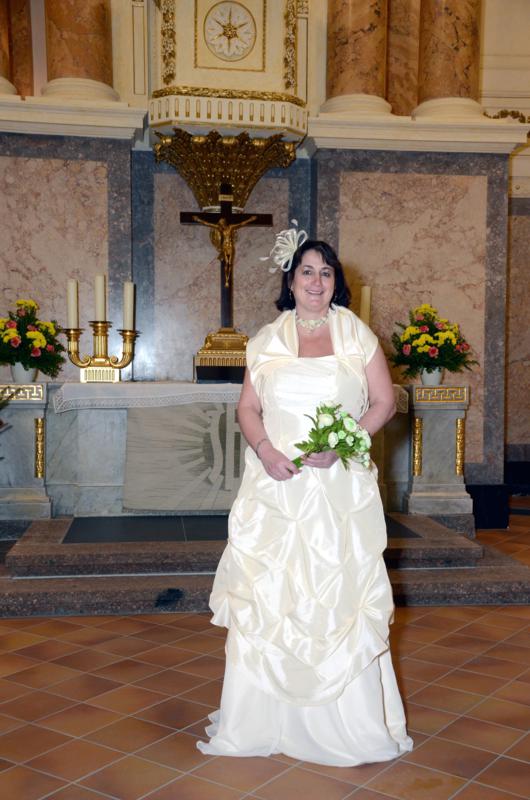 Opulentes Brautkleid aus hochwertigem holländischen Taft von FossaDesign – nur Maßanfertigung möglich, für die etwas stärkere Figur, hier in Größe 46 im Geschäft erhältlich.