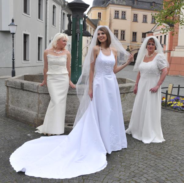Eine Variation von herrlichen Hochzeitskleidern. Jedes ist ein Einzelstück, erhältlich im Geschäft FossaDesign, Greiz, Thomasstr. 1a.