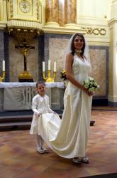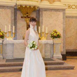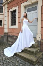 Hochzeitskleid aus der FossaDesign - Kollektion mit ausgeschnittenem Dekoltee`ausschnitt aus hochwertigem holländischen Taft mit Teilungsnähten und kleiner Schleppe.